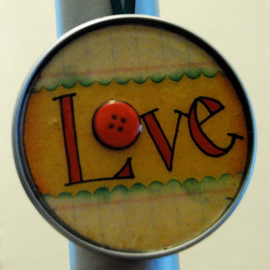 Juice can lids and this fabulous find of red buttons that I picked up at one of our local antique stores for $2! Can you believe it?! I just had to have them even though I had no idea what I would do with them at the time.